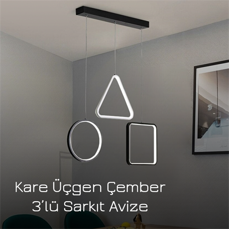 Monotech 3 Lü Kare Üçgen Çember Led Sarkıt